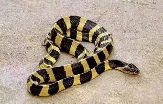 金环蛇是一种具前沟牙的剧毒蛇,与眼镜蛇、灰鼠蛇合称“三蛇”,是著名的食用蛇种。