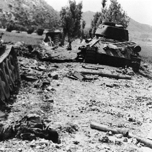 与此同时,朝鲜人民军已经聚集了一支近9万人的大军,并用150辆T-34坦克予以支持。T-34是一种车身低平的中型坦克,一直是苏联陆军在二战结束时的标准配备。T-34火力强大,装备一门85毫米榴弹炮和两挺7.62毫米机枪。该坦克威力无比:曾经阻止了德国人进军莫斯科,此后苏联人就继续将它作为一种基本装备。