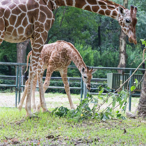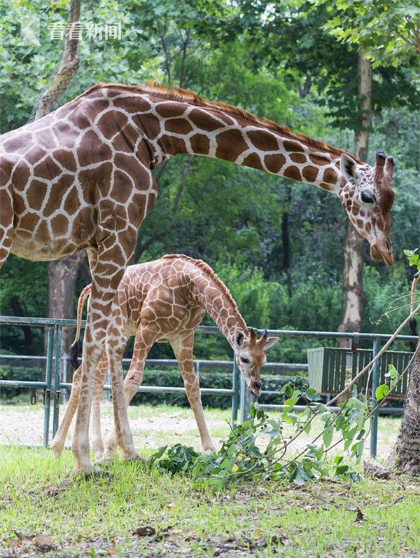 今年五月,可爱的小长颈鹿“八五”也诞生了。5月17日,正当饲养员和往常一样在清扫待产室时,忽然妈妈“琼八”的羊水破了,地上满是白色的透明粘液。经验丰富的饲养员立即请来了兽医协助。在近两小时的生产过程中,工作人员营造了一个安静的分娩环境并实时监控,终于,在上午10点07分“琼八”顺利地生下了一只健康的雄性长颈鹿,因其是妈妈的第五个孩子,采用长颈鹿的习惯取名法故取名“八五”。11点47分“八五”第一次站立、第一次迈开步子探索,下午1点03分“八五”喝到第一口母乳。如今,“八五”已经能够疾驰如飞并尝试进食树叶了,妈妈一直小心地看护着自己的孩子,与饲养员一起看着它健康成长。