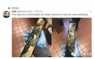 美国男子Nick在其Twitter上发照片称,这是麦当劳冰淇淋机上的零件。