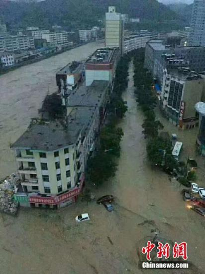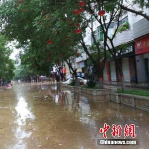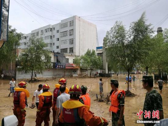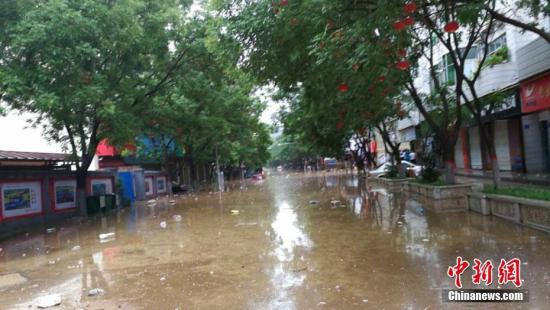 陕西部分地区遭强降雨袭击,7月25日8时至26日6时,该省已有74个县(区)降雨。图为子洲县城内涝。文/王永平 子洲宣传部供图