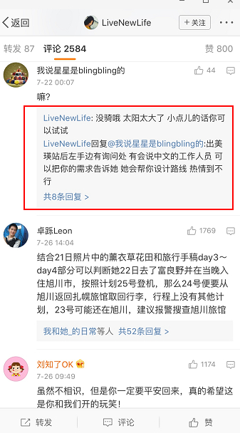 也有网友指出北海道地广人稀,有可能迷路或者因为一些意外事故而无法联系到外界。但也有网友指出,在札幌周边和观光地附近,观光客和日本人比较多。现在正值北海道夏季旅游旺季,纵使迷路,也应该很快就可以求助。