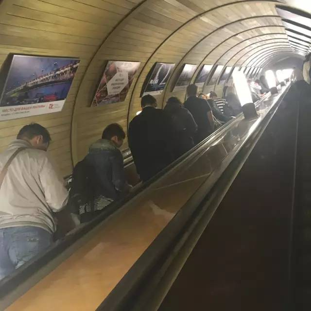 在莫斯科的地铁里,不管有多长的队伍,队伍旁边都会主动留出一条快速通道,以供他人步行上梯。
