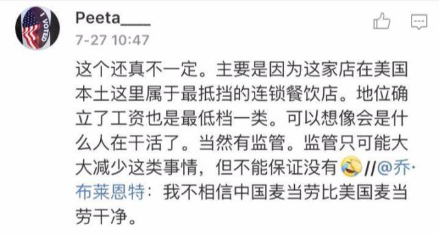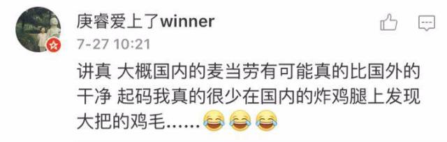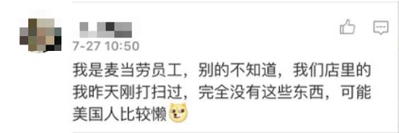 另一部分网友则认为,中国的麦当劳整体卫生还是值得认可的。
