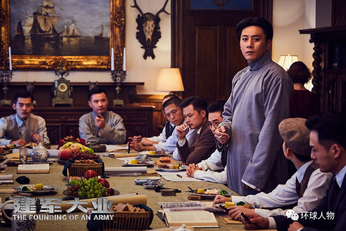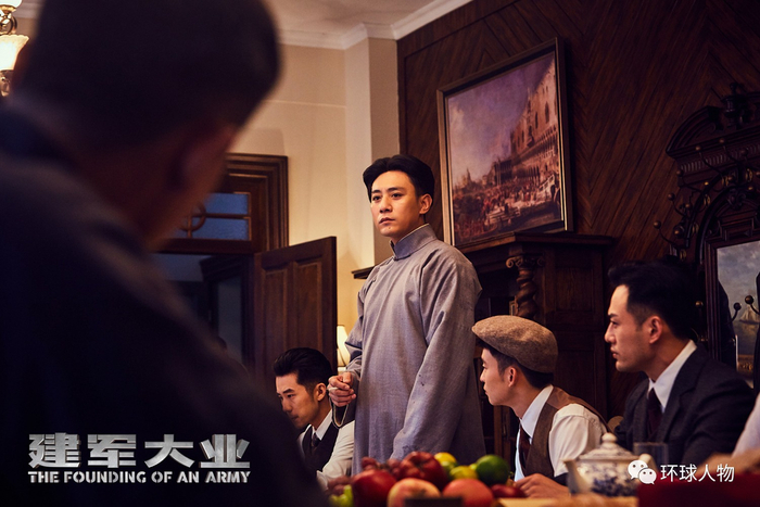 “毛泽东也有儿女情长,但在民族危机面前,他选择后者,虽然很艰难。”他又记起《建军大业》那一幕,和杨开慧分开,三个孩子哭着喊“爸爸!爸爸!”毛泽东扭头往前走,回了一次头,然后再坚定地埋着头往前走,只留下一个背影。那一幕,是激烈而密集的战争场面中,瞬间静下来、痛起来的点。