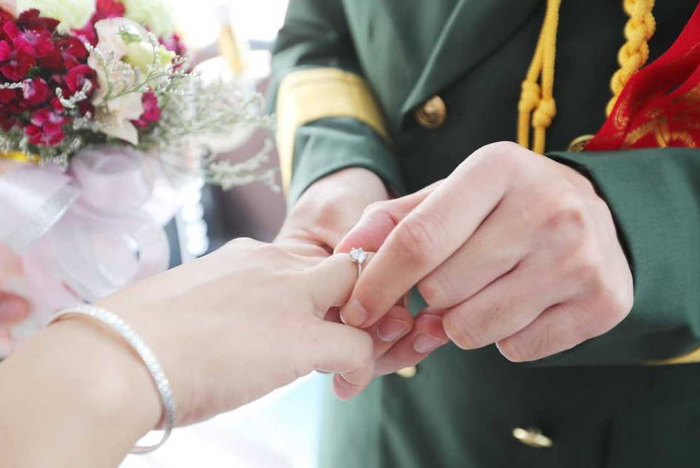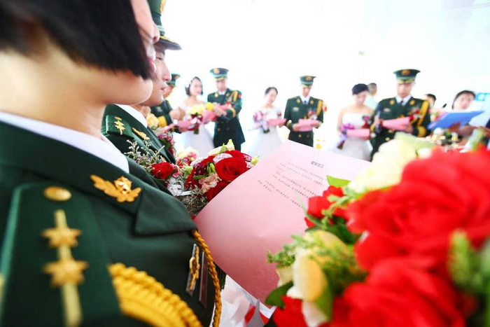 “我想谈一场公开的恋情,爸妈认可、亲戚知晓、战友祝福的恋爱,如果可以,只谈一场,要么不开始,要么一辈子。”新人代表徐国旺的致辞感人肺腑,“生命中有了当兵的历史,一辈子都不会后悔;生活中获得军嫂的荣耀,一生都值得珍惜。军人因奉献而崇高伟大,军嫂因坚守而美丽动人。”