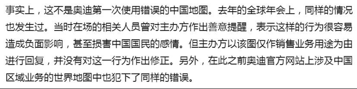 更有报道称,使用错误的中国地图,奥迪已经不是第一次了。