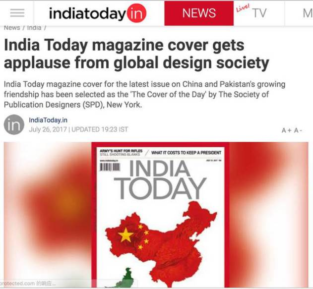 据悉,文章内容不过是老生常谈中国如何“威胁”印度等。但重点是封面,作为印度主流杂志,竟然把西藏、台湾从中国版图上抹掉了!这是什么意思?