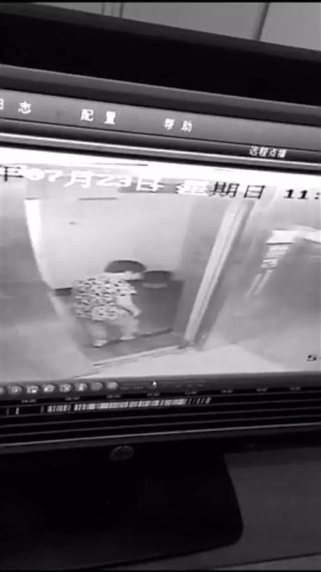 监控视频显示,事发前,阿姨独自拿着保温杯在电梯里,电梯到9楼时,她俯下身子,把保温杯放到电梯门轨道最右边,抵着电梯门。之后,她小心地走出电梯,但头一直低着,盯着保温杯。