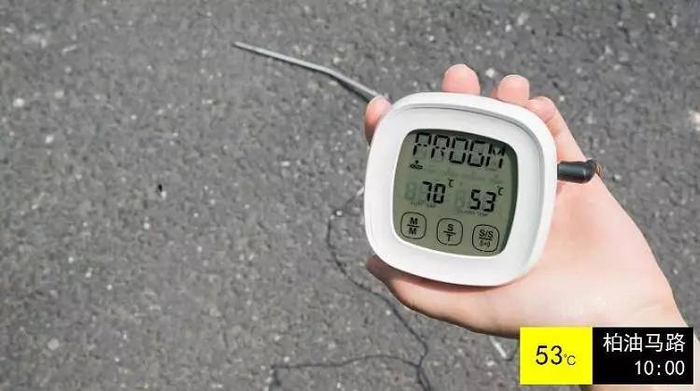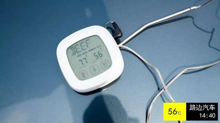 为了避免被烫熟,周到君也试着为大家测量到,有效的车座降温方式。