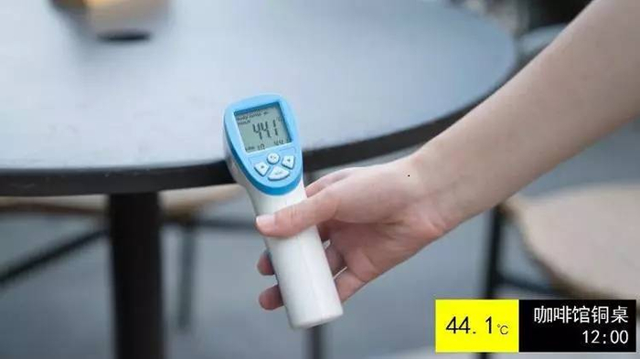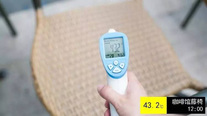 就在周到君兴致勃勃想要告诉你们,外面的桌椅温度高达50℃啦!这时候来了一片乌云,阳光被挡住,温度也就降下来了,不过,也仍旧是坐上去就会“烫腚”的高温。