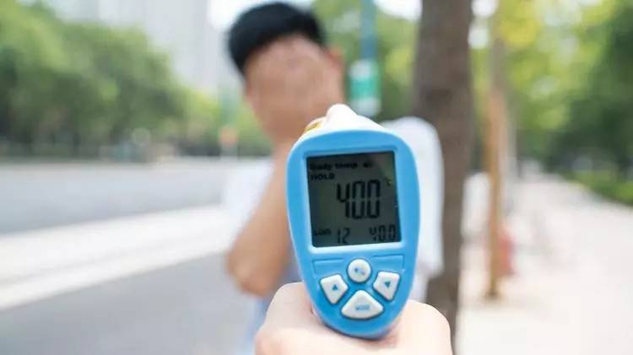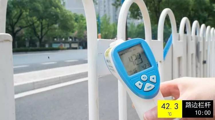 讲道理,在这种40℃的高温下,户外露天活动是得取消的,而周到君却一直在大太阳下暴晒、行走&……测温。