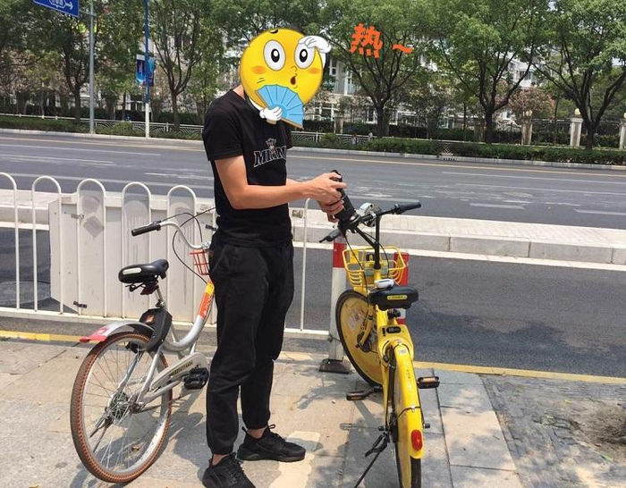 周到君也知道生活不易,即使热到人和车(座)都快要爆炸,共享单车还是要骑。