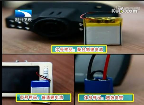 将行车记录仪的三种电池进行了高温测试,这三种电池分别为:普通锂电池、聚合物锂电池、超级电容。