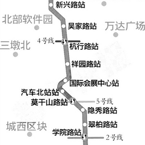 其中换乘站4座,分别为玉古路站(与3号线一期换乘)、学院路站(与2号线西北段换乘)、莫干山路站(与5号线一期换乘)、杭行路站(与4号线二期换乘)。另外,今年年底开工的地铁线路还有3号线一期、5号线二期和9号线一期。