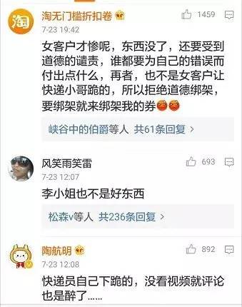 7月22日,一段广州市快递员向一名女客户下跪道歉的视频传遍了网络。