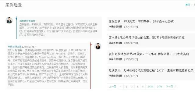 该申诉网站的一份案例显示,有消费者投诉由于虚假签收带来的运输延误,导致收到的冷鲜肉已经变质不能食用。被投诉的百世快递公司与申诉人电话联系了解情况,进行说明解释,上海市邮政管理局也回访申诉人,解决落实了快递企业应付的赔偿金额。
