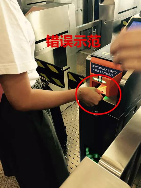 正确的做法是将身份证和车票叠在一起,而且车票要放在上面(有二维码的那面一定要朝上),身份证要放在下面。