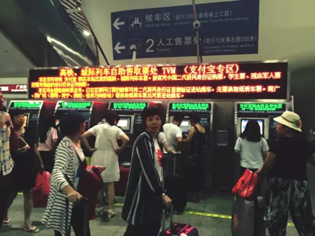广州南站推出了自助售取票机,有支付宝和银行卡支付的两个专区。没有提前买票的街坊可以随到随买。