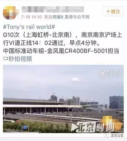 航班管家:“复兴号”京沪高铁提速了提速了(恢复到350公里时速),速来围观
