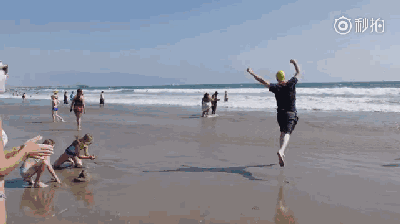于是,小伙尖叫着冲向海滩