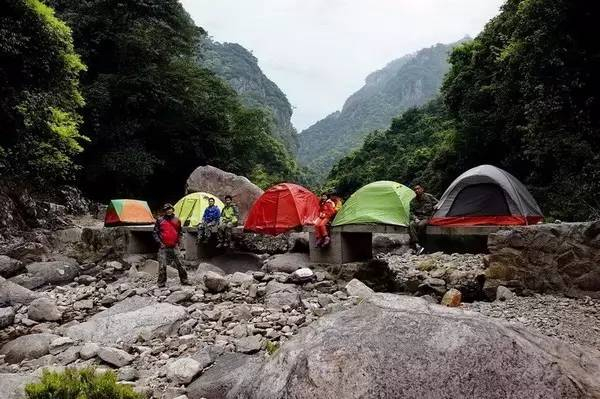 八重溪以后的峡谷地段,几乎没有像样的平地,回程时找了段小桥,作为扎营的地点,嘿!还真是不错,够平,晒了一整天的太阳,手触摸还微热,就在水源上方,餐饮、洗漱方便。