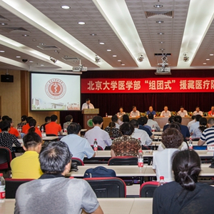 会议现场根据中组部、人社部、国家卫生计生委、教育部关于“组团式”援藏医疗人才的一系列指示精神要求,北京大学附属医院第三批援藏医疗队员21人集结完毕,准备出征。