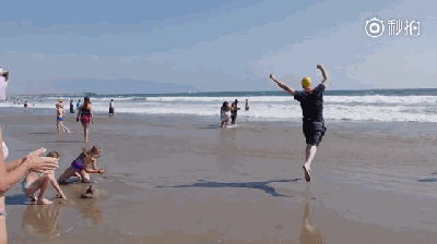 于是,小伙突然兴奋,尖叫着冲向海滩……