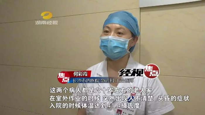 长沙市第四医院,这几天已经接收了20多名中暑的患者,仅昨天一天就有6人,其中两位60多岁的老人重度中暑,被送进了ICU病房抢救。