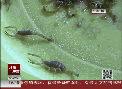 这一盆是居民两个小时抓的,有30多只,有6、7只是非常大的。用筷子夹起蝎子的时候,从蝎子的尾部喷射出了毒液,村民没少让蝎子蜇。