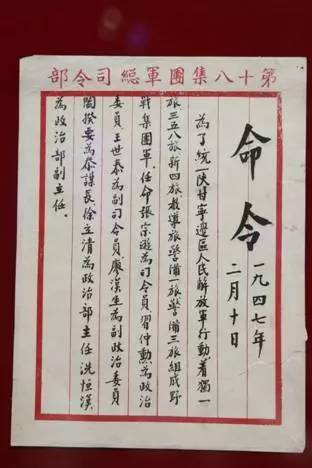 摆在你面前的这份红头文件,红框白底黑字,一共206个字,签发于1947年2月10日。“命令”分左右两页,右边是正文。