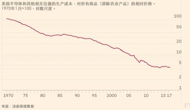 半导体价格暴跌是通信和数据处理革命背后的推动因素。按照这种方式衡量,信息处理的相对价格自1970年以来下跌了近96%。
