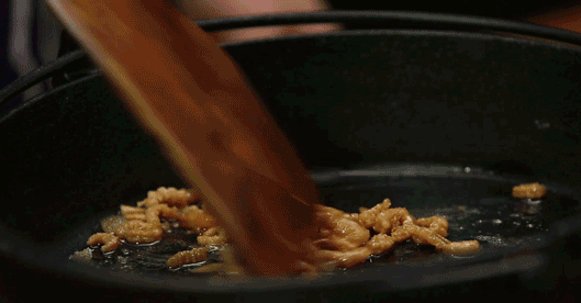 开发的新菜海带炒银鱼,母亲不大喜欢,他在朋友圈跪求银鱼干的做法;鱼腥草炒牛肉这样的搭配,母亲竟然很喜欢,他很开心;毛豆用香料和盐文火慢炖到软烂,母亲吃了一盘,他很有成就感;母亲爱吃虾,油爆虾成了他的拿手菜,“练了分筋错骨手来轻松抽虾线”……
