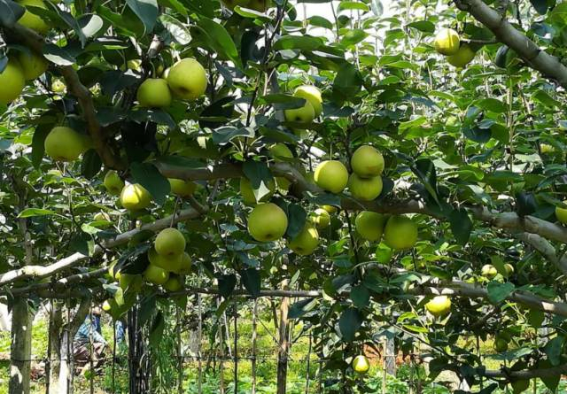 终于,他的梨树挂果了,两亩地差不多一共可以收获4、5吨梨!