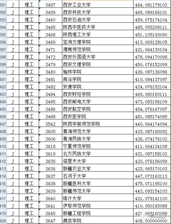 2017年甘肃省普通高校招生本科二批J段录取院校投档最低分(理工类)