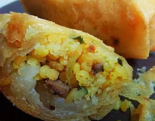 皮薄如纸,外皮金黄、酥脆,内馅鲜美。啊,好想吃这个~