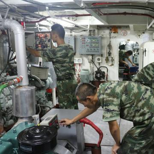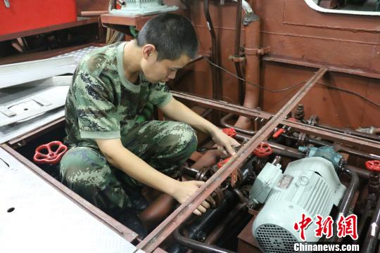 图为:舰艇航行中机电兵检查主副机运转状况 何蒋勇 摄