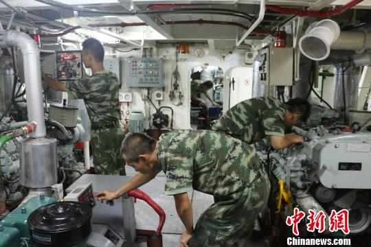 出海巡逻的日子,在机舱狭窄的机舱里,“战酷暑、练本领、排隐患”,这是机电兵们的职责。此时,机电长蒋廷带领官兵对主机和副机进行维护保养。