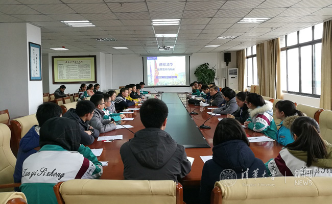 清华大学招生组教师与优秀高三学生交流。