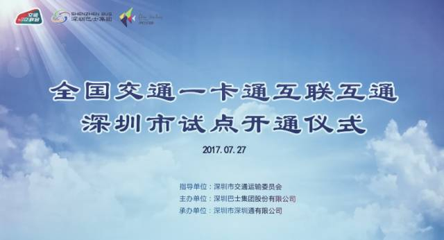 7月27日,由深圳巴士集团主办,深圳市深圳通有限公司承办的“创新融合,绿色共享——全国交通一卡通互联互通深圳市试点开通仪式”在福田交通枢纽举行,标志着深圳加入了全国互联互通之列,正式接入全国交通一卡通互联互通。据了解,截至2017年7月18日,全国已有165个城市加入互联互通。而符合全国互通标准的深圳通卡有望今年内发行。届时,深圳市民手持一张卡,即可走遍全国165个城市。