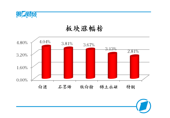 截至沪深股市全天收盘,上证综指收报3253.24点,上涨3.46点,涨幅0.11%,成交额1,984亿元;深证成指收报10437.94点,上涨42.75点,涨幅0.41%,成交额2,605亿元;创业板指收报1734.07点,下跌8.12点,跌幅0.47%,成交额700亿元。盘面上,石墨烯、白酒、钛白粉等板块涨幅靠前;国防军工、网络安全、环保工程等板块跌幅靠前。