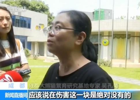 成都大熊猫繁育研究基地专家 吴孔菊:我们很多幼仔在半岁一岁的时候上树,它也从树上掉下来,基本上完全没有任何伤害,所以说饲养员把它放进去,可能动作幅度大一点的动作,应该说在伤害这一块是绝对没有的。