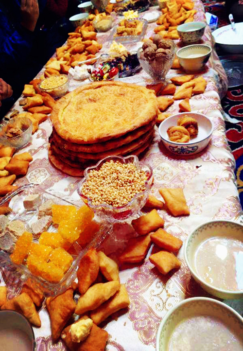 熏马肉是哈萨克族美食中的一绝,最有名的熏马肉是熏马肠,还有烤全羊、清炖羊肉、抓饭、胡尔达克、奶茶、包尔萨克和各种哈萨克族特色小吃。