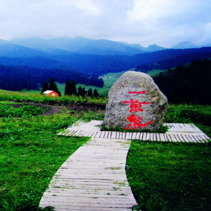 此地名为一万泉,是国家AAAA级景区,位于奇台农场以南无名峰下,跟江布拉克一沟之隔。是北疆东部天山北坡最好的天然草场之一,距离乌鲁木齐250公里,占地4平方公里的面积。自然降水丰富,空气清新,景色怡人。