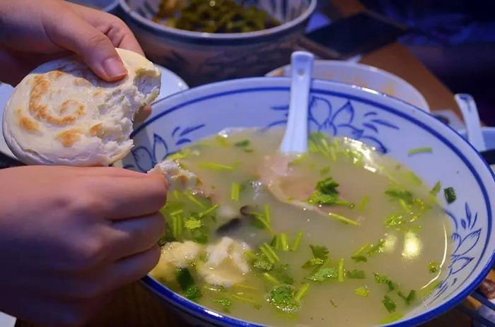 “水盆羊肉”的叫绝关键在“汤”上,所谓汤清如水但味浓如肉,配上刚出炉的锅盔馍,吃上一口羊肉,撒上香菜,肉烂汤香,放上粉丝,浇上热汤,埋头于大碗之中,那浓郁的西北风情瞬间渲染开来。