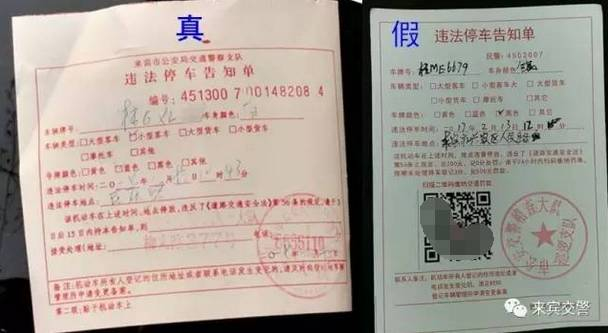 ▲真、假罚单的对比(左为真,右为假)