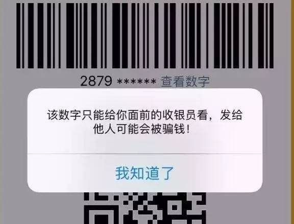 目前支付宝在付款页面,已将数字编码隐藏,点击可以查看全部数字,但页面会弹出提示“该数字只能给你面前的收银员看,发给他人可能会被骗钱”。