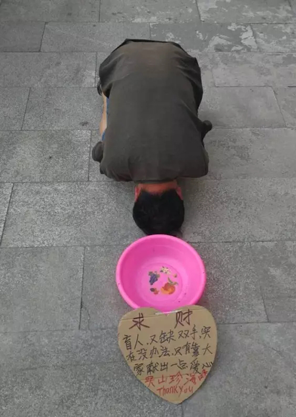 义乌一男子行骗被拘:假装眼盲和双手残疾,每天讨够百元收工