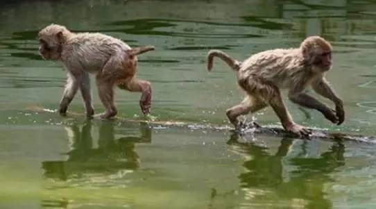 28日,南京市气象台继续发布高温红色预警信号,该市部分地区最高气温达40℃,南京一家动物园内的猴子跃入水中,避暑降温。(中国网)