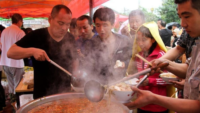 7月28日,一些民众在陕西绥德街头设置免费用餐点,为当地受灾民众提供饮食。7月25日13时至26日8时,绥德县境内普降大到暴雨,局部地区出现特大暴雨。全县各镇遭遇了不同程度的洪涝灾害。(新华网)
